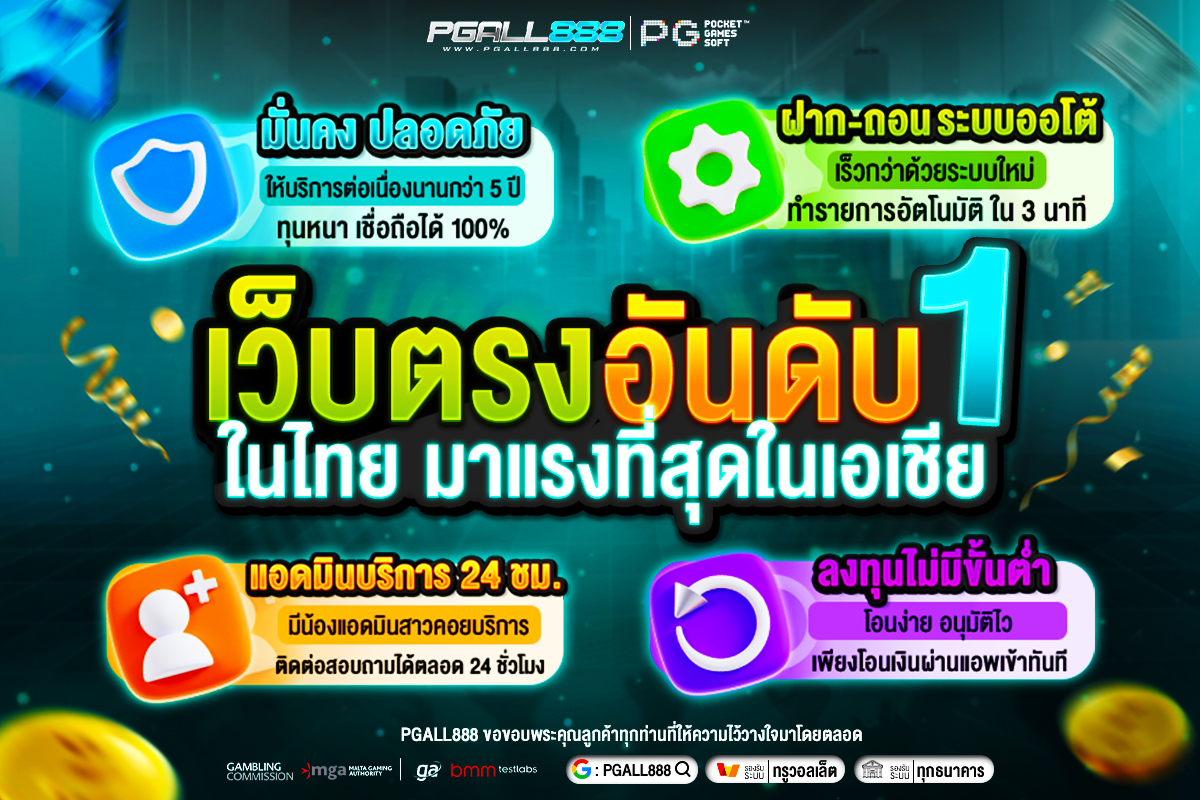 pgall888 เว็บตรงที่มั่นคงและปลอดภัยที่สุด ตอบโจทย์ทุกความต้องการของนักเดิมพัน ไม่ว่าจะเป็นสล็อต บาคาร่า หรือเกมคาสิโนอื่นๆ ระบบของเว็บถูกออกแบบมาให้ใช้งานง่าย พร้อมการรักษาความปลอดภัยขั้นสูง ปกป้องข้อมูลและการทำธุรกรรมของผู้เล่นอย่างเข้มงวด คุณสามารถเดิมพันได้อย่างมั่นใจทุกครั้ง พีจีออล888 ยังมีบริการฝาก-ถอนที่รวดเร็วและโปรโมชั่นสุดคุ้ม มอบประสบการณ์การเล่นที่ดีที่สุดในทุกการเดิมพัน