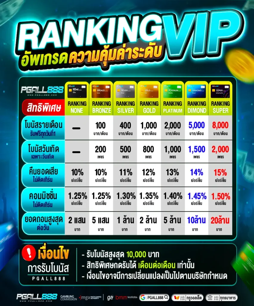 pgall888 มาพร้อมกับโปรโมชั่นมากมายที่ออกแบบมาเพื่อเพิ่มโอกาสในการลุ้นรางวัลใหญ่ ไม่ว่าคุณจะเป็นสมาชิกใหม่หรือสมาชิกประจำ ก็สามารถรับสิทธิพิเศษได้ทุกวัน ทั้งโบนัสฝากเงิน เครดิตฟรี และโปรโมชั่นพิเศษที่ตอบโจทย์ทุกความต้องการ สนุกกับการเดิมพันสล็อต บาคาร่า และเกมคาสิโนอื่นๆ ได้อย่างคุ้มค่า พร้อมลุ้นรับแจ็คพอตใหญ่ได้ง่ายๆ ที่ Pgall888 เว็บที่มอบความคุ้มค่าในทุกการเดิมพัน